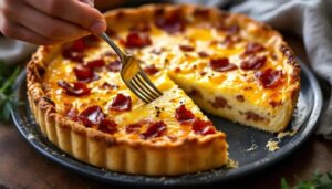 En ce début de printemps, les épinards peuvent céder la place aux premières asperges vertes coupées en biseau et sautées au beurre, ou aux champignons de Paris revenus à l'ail. Le fromage de chèvre peut être remplacé par de l'emmental râpé pour une version plus classique, ou par de la ricotta pour une texture plus crémeuse et moins acidulée. Pour une version végétarienne, supprimez le jambon et doublez la quantité de garniture végétale ; ajoutez éventuellement quelques pignons de pin grillés pour apporter la rondeur et le croquant que le jambon ne fournit plus.