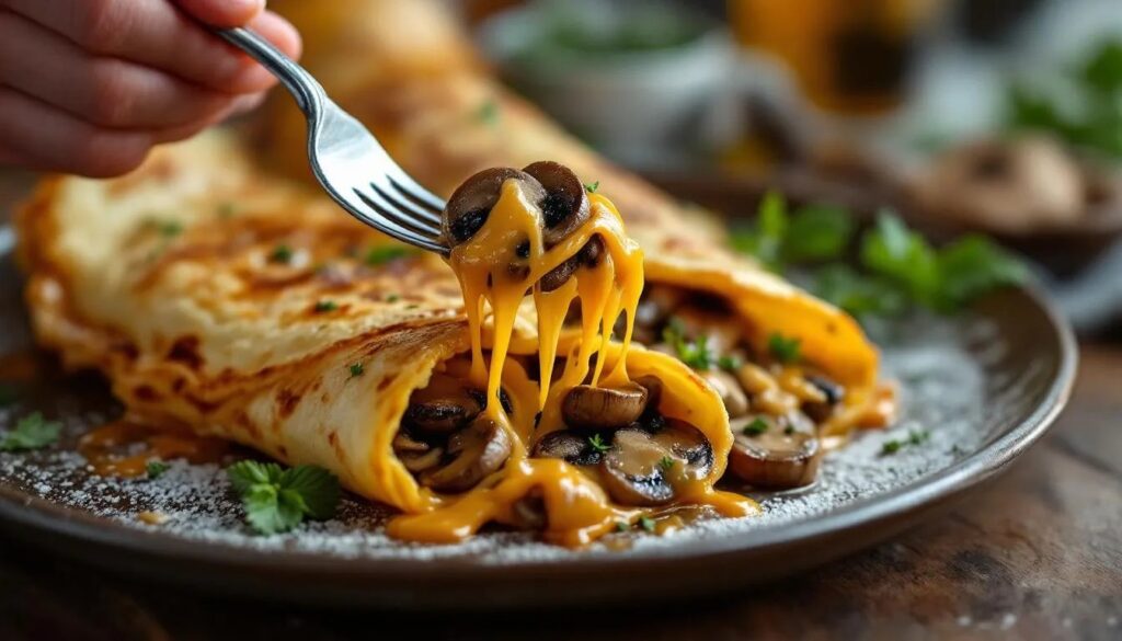 Faites glisser la crêpe pliée directement sur une assiette chaude. Une assiette froide condense la vapeur sous la crêpe et détruit le croustillant en moins de trente secondes. Servez sans attendre. La crêpe ne supporte pas l'attente : elle se déguste dans les premières minutes, lorsque le contraste entre la surface rigide et crépitante et l'intérieur fondant de fromage et d'épinards est à son maximum.